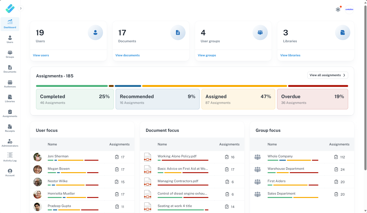 From the simplistic view of wanting to know that all your staff have done all the above steps, through to needing to provide evidence to customers or regulatory body. Whatever your reasons, you will need some form of Management Information reporting on these final stages of getting your SOP read and understood. When done manually using emails and list this can take hours and be very unproductive. The recommendation is to ensure the solution you use can automate this and provide the MI (Management Information) to back it up. Whilst the workflows in DocRead take care of ensuring your staff have read and understood the content. The DocRead compliance cockpit gives you the tools in an easy to use interface that allows you to track that activity and provide the evidence where required.