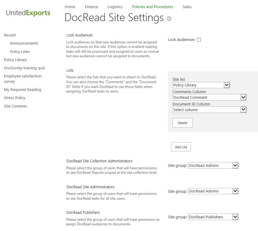 DocRead Site Administration: