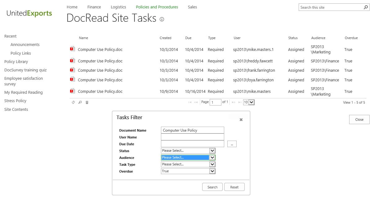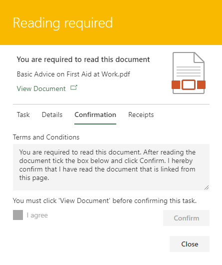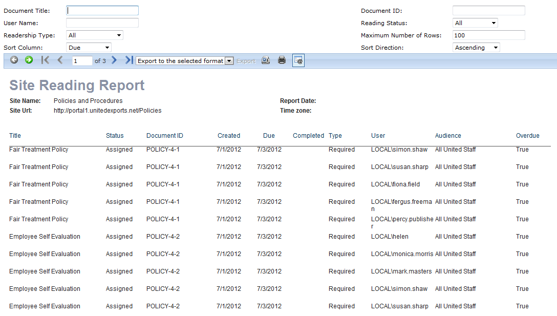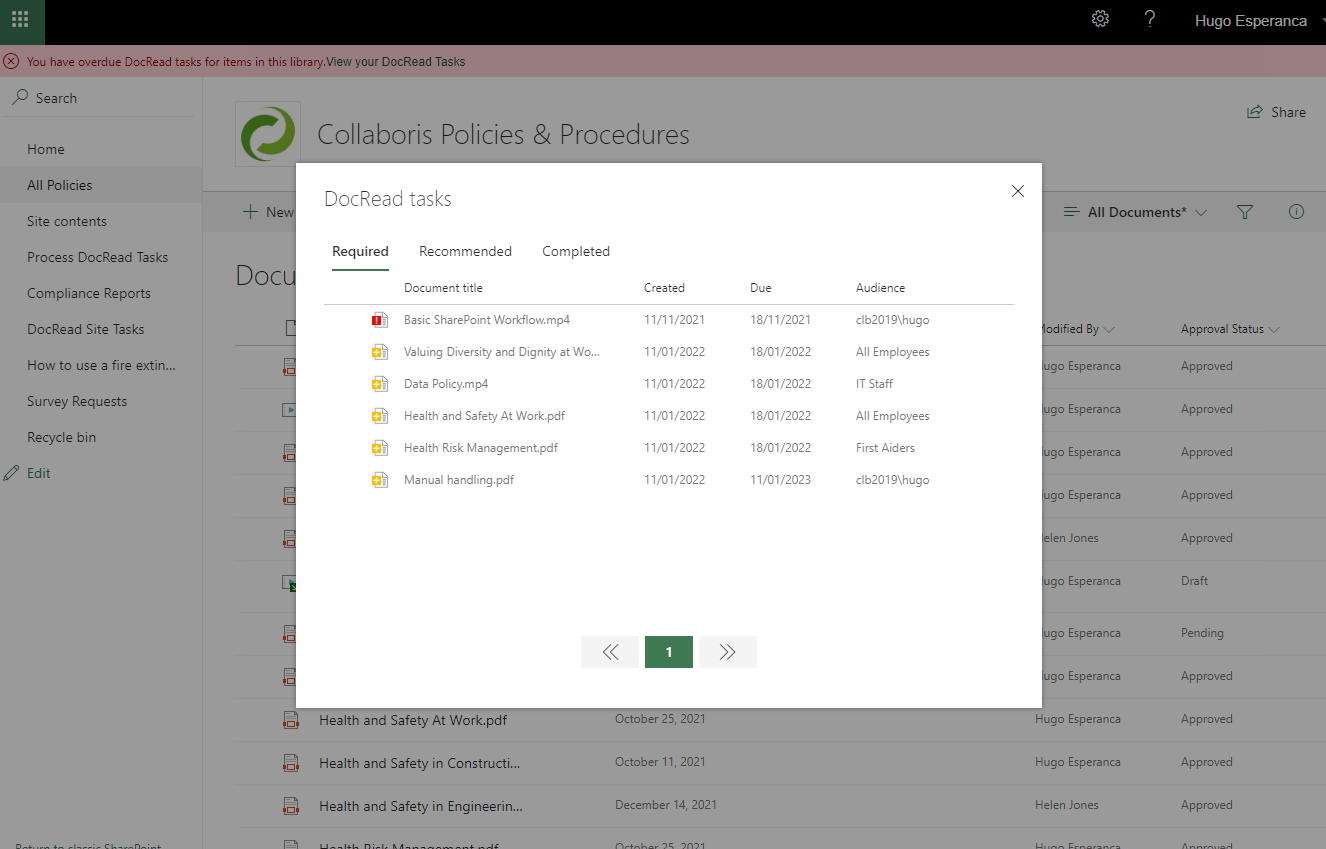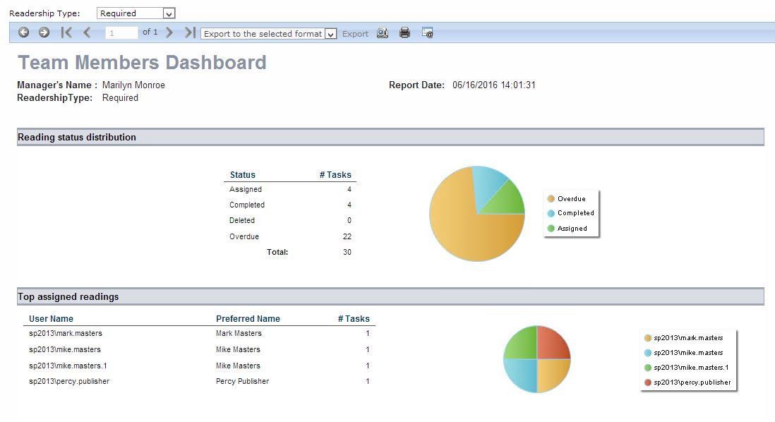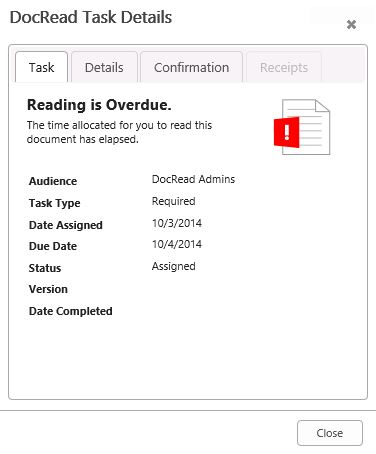 Displays the list of all the reading tasks for documents on the library