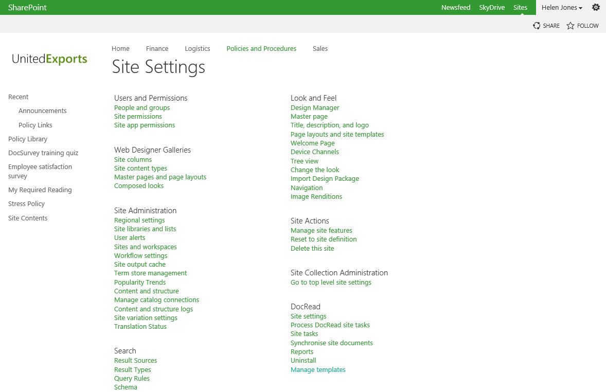 DOCREAD SITE SETTINGS