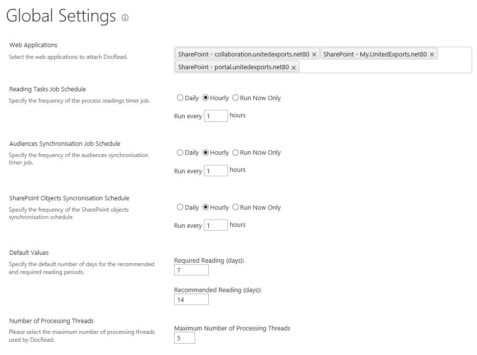 DOCREAD GLOBAL SETTINGS