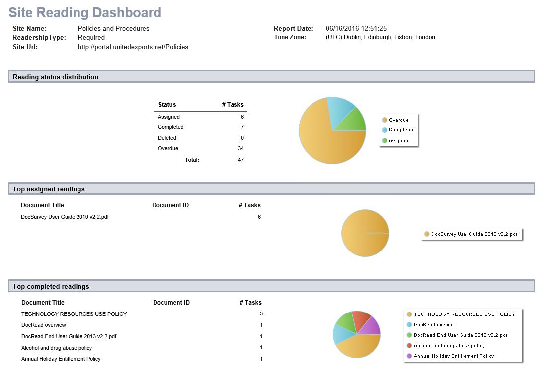 READING DASHBOARD REPORT