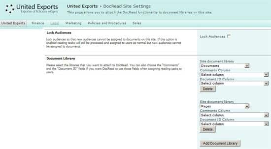- Go to the DocRead Site Settings page: