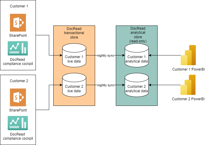 The new module goes beyond just adding a few extra reports. It creates a completely separate analytical data store for each customer. This data store can be queried and reported on independently of DocRead’s transactional database, meaning there’s no impact on the performance of the day-to-day use of DocRead. This separation ensures that all compliance data is readily available for deep analysis without affecting the regular workflow within the organisation.