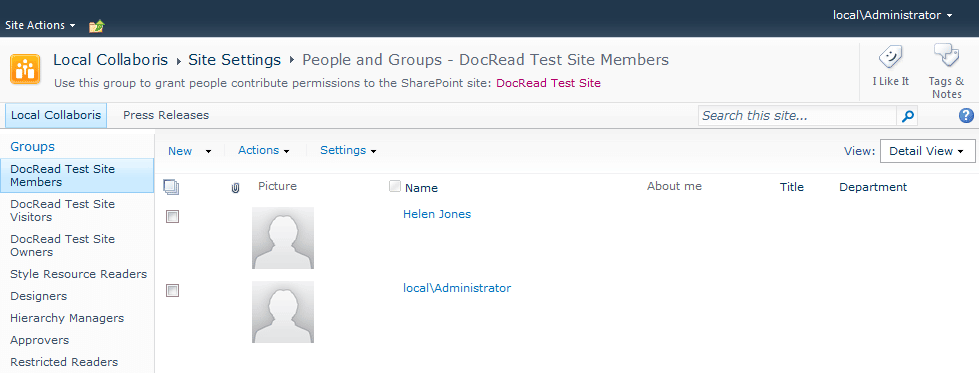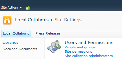 1. Log in as an administrator and navigate to the site where the group is to be used.