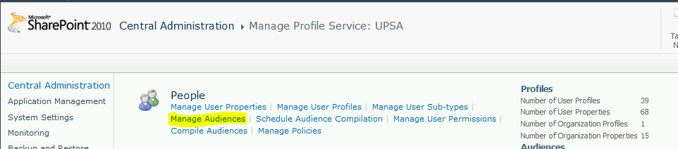 Now, in order to create a new Audience navigate to User Profile service application and click on Manage Audience—-> New Audience