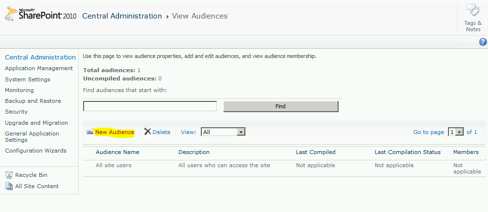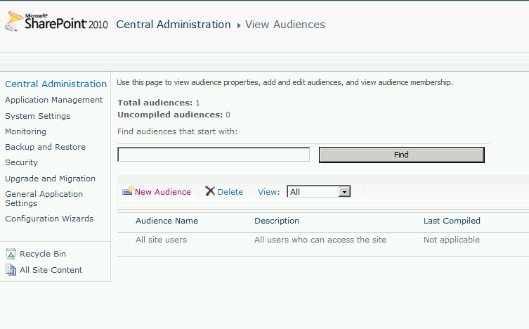 Congratulations!! We have created a new Audience. So, are we ready to target content to this Audience? Not yet, we still haven’t compiled the Audience. Just like when we create a new user in Active Directory, we have to run profile import to bring the user and it’s attributes to SharePoint, when we create an Audience we have to compile the Audience to import users in it as per the logic of the Audience. Right now we have only created an Audience; there are no members in it.