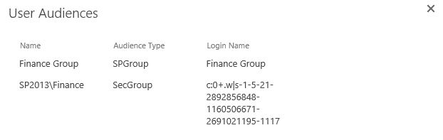 This option displays a list of all of the user groups and audiences that person is a member of.