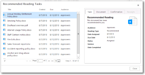 We are proud to say that the DocRead version 2.0 now fully supports SharePoint 2013 and also includes new functionality to help Line Managers *track their team members reading assignments.