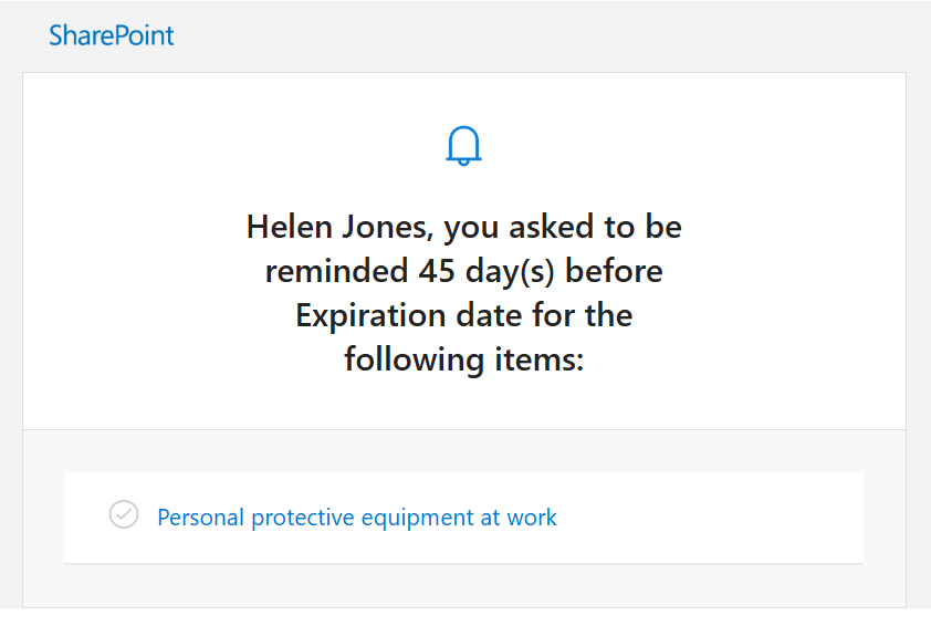 - This reminder flow will be applied to all of the documents in this library. You therefore need to make sure that all documents needing a review have an expiration date.