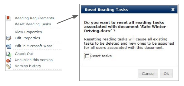 - Using ‘reset task’ will remove any existing (incomplete October 2013) tasks from users reading lists and send out a new task for everyone in the group to read the new October 2014 document.