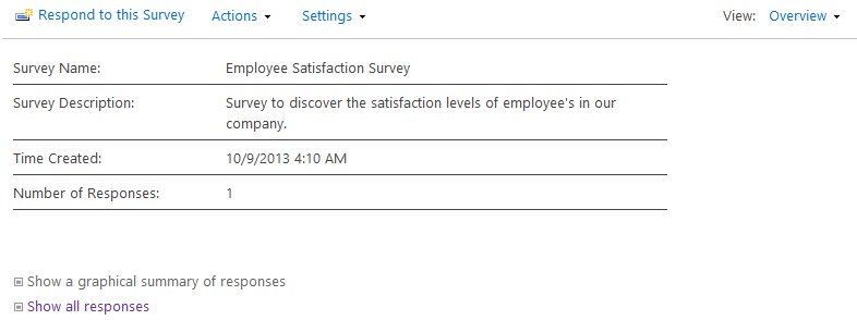 Visitors cannot respond to the survey and also they can’t see the number of responses. While they are able to see the links to show all responses and also graphical summary, nothing is displayed.