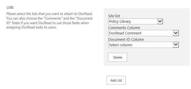 - Check if “DocSurvey Requests” is listed as one of the lists attached to DocRead.