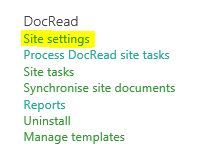 - Go to the DocRead Site Settings page ( Site Settings > Site Settings (under the DocRead group))