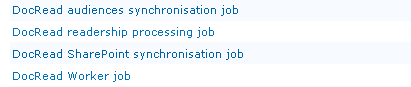 1. Temporarily disable all of the DocRead timer jobs from within Central Admin. You will need to enter each one and click “Disable”.
