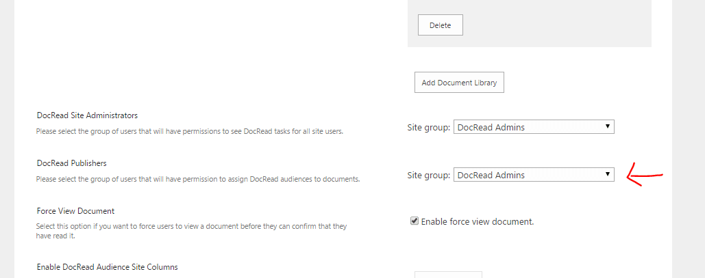 1. Navigate the ‘DocRead Site Settings’ screen (in the site that contains your document library).