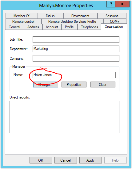 The ‘Manager’ field in Active Directory isn’t configured.