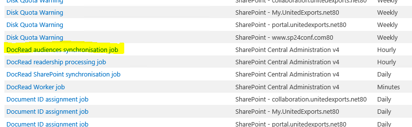When this SharePoint Timer job runs, the Manager is extracted from each SharePoint User Profile. If the job doesn’t run, DocRead will never get updated.