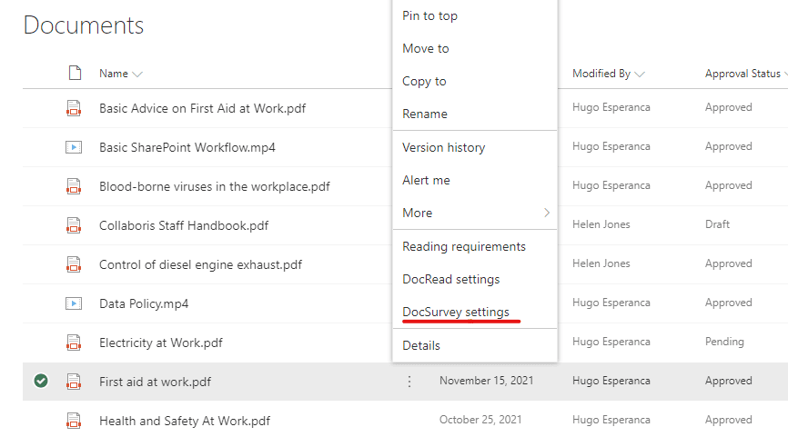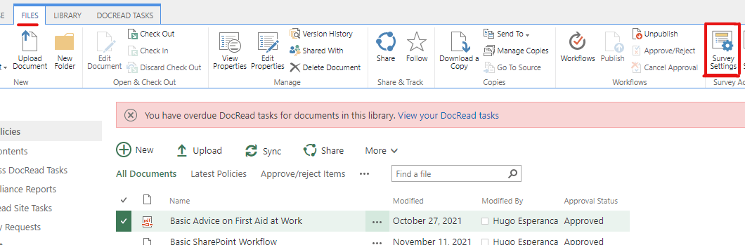 If you have created a survey, quiz or questionnaire using DocSurvey for SharePoint and want to link it to a specific document then you can easily achieve this by following these simple steps.
