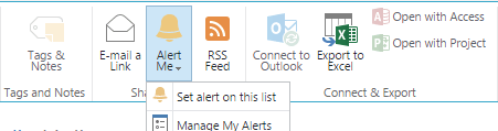 2. Once, you get the “Alert Me” Option in ribbon. You should be able to manage and set your alerts.